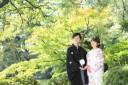 和室庭園横の神社にて、緑と赤野コントラストをバックに撮影させていただきました^^