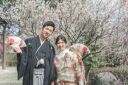 趣ある門前でのお撮影。桜を前に撮ることでとても華やかさをアップさせていいですね。