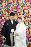 背景のお花がピンク色でご新婦様のお着物コーディネートとの相性もバッチリです!