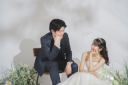 POPで可愛らしいフラワーウォールは気分も盛り上げてくれますね☆ 寄り添ってやさしく微笑むお二人がとても素敵な一枚です