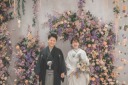 白い光が綺麗にお二人を包みます。カーテンの中も別の羽衣のように綺麗にまとうことができております。綺麗ですね。