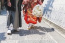 大覚寺の堂内でお座りショット。見つめあっているお二人の表情がかわいくて微笑ましい一枚です。