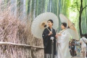 扇子でお顔を隠している一枚。雰囲気が出てお二人らしさのある素敵なアイディアショットですね。