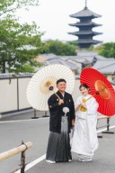 渡月橋とご新郎様のソロショットの組み合わせもとってもカッコよく決まります!