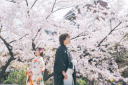 祇園での桜並木でロケーションフォト♪新郎様の和装姿の貫禄に感嘆の声…!