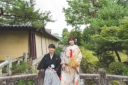 シンプルな背景にお二人の素敵な衣装がとってもよく映える一枚肩を組んで、とっても仲良しなお二人
