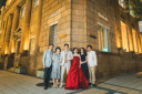 大きなカーテンと雰囲気ある会場が印象的なスポットではおふたりもバッチリ決めてかっこよく!