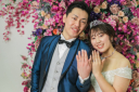韓国フォトの中でも印象的なベールインフォト。まるで映画の一幕のようなロマンチックなお写真となりました。おふたりの表情もとってもいい感じ、、!