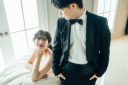 まるで挙式のその瞬間のように、指輪交換のシーンを演出