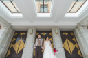 古都の街並みの中に溶け込むお二人、この町一番の主役に