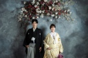 色鮮やかな背景の中で白無垢が美しく映えるフォトジェニックな一枚を