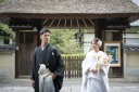 日本の伝統的な建物がレトロな雰囲気を演出。向かい合うお二人から仲睦まじさが伝わってきます。