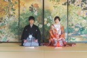 階段を使ったショットは、ドレストレーンを生かしてスタイルアップに。アンティークメリーゴーラウンドが新婦様をより引き立ててくれますね。