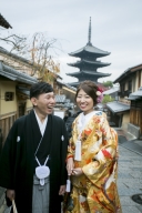 八坂の塔をバックに素敵なお写真ですね☆番傘でより綺麗なお写真に