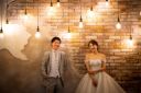 新郎様にそっと寄り添う新婦様。お二人からは、リラックスした雰囲気が感じられますね。