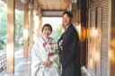 王道のお正座ショット 和を感じる穏やかな空間でにっこりとした笑顔のお二人です