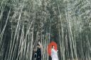 深々と色づいた竹林の中で、白と赤の番傘はベストマッチですね!!