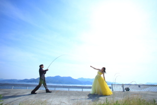 大好きな車3台と撮影すること、釣り好きな新郎が釣り竿を持って撮りたいことなど、無理を言ってたくさん撮影してもらいました。 屋外の撮影はすごく天気も良くて車も空もいい感じに写真におさめてくれて、大満足です! ステキな写真が多すぎてどの写真を実際の結婚式で使うかなど、選ぶのが大変です。。