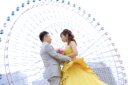 お二人仲良く寄り添って、奥様の素敵なドレスも広げてお写真映え間違えなしです!
