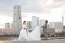 撮影終了と共に素敵な日没が出てまいりました。お2人の見つめ合う素敵なイメージカットとなりました。