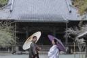 みなとみらい店のスタジオには和室のセットがございます。スタジオでお二人の後ろ姿をお撮りします。