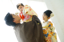 まずは、和風の背景でしっかりとしたポーズ!!2人共、緊張感を感じさせない素敵な笑顔です!