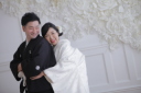 大人気のペーパーファンのセットでの撮影です。背中合わせでしっとりと。