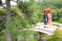 見つめあってしっとりと。紫のカラードレスがとてもお似合いです。