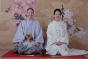 ドライフラワーをたくさん使った背景で華やかに。クレール梅田店ではいろんな背景での撮影が可能です。