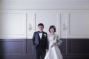 白の背景にはカラードレスが映えます!とってもお似合いでした。