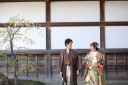 和装のロケーションで人気の日本庭園。自然な笑顔が素敵です。