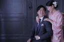 お顔を見合わせて自然な表情で。和装にドライフラワーとても素敵です。