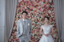 ピンクのバラの背景がとてもお似合いの可愛らしいお二人でした。