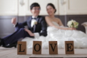 おふたりの白が映える赤の背景で、おめでたさ倍増!!