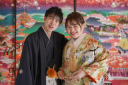京町家をいかしたスタジオならではのお店の前での撮影。築100年以上の町家の雰囲気と和装もマッチ。