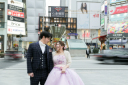 竹林での撮影後には街中へとお散歩に雰囲気もカジュアルになり素敵です