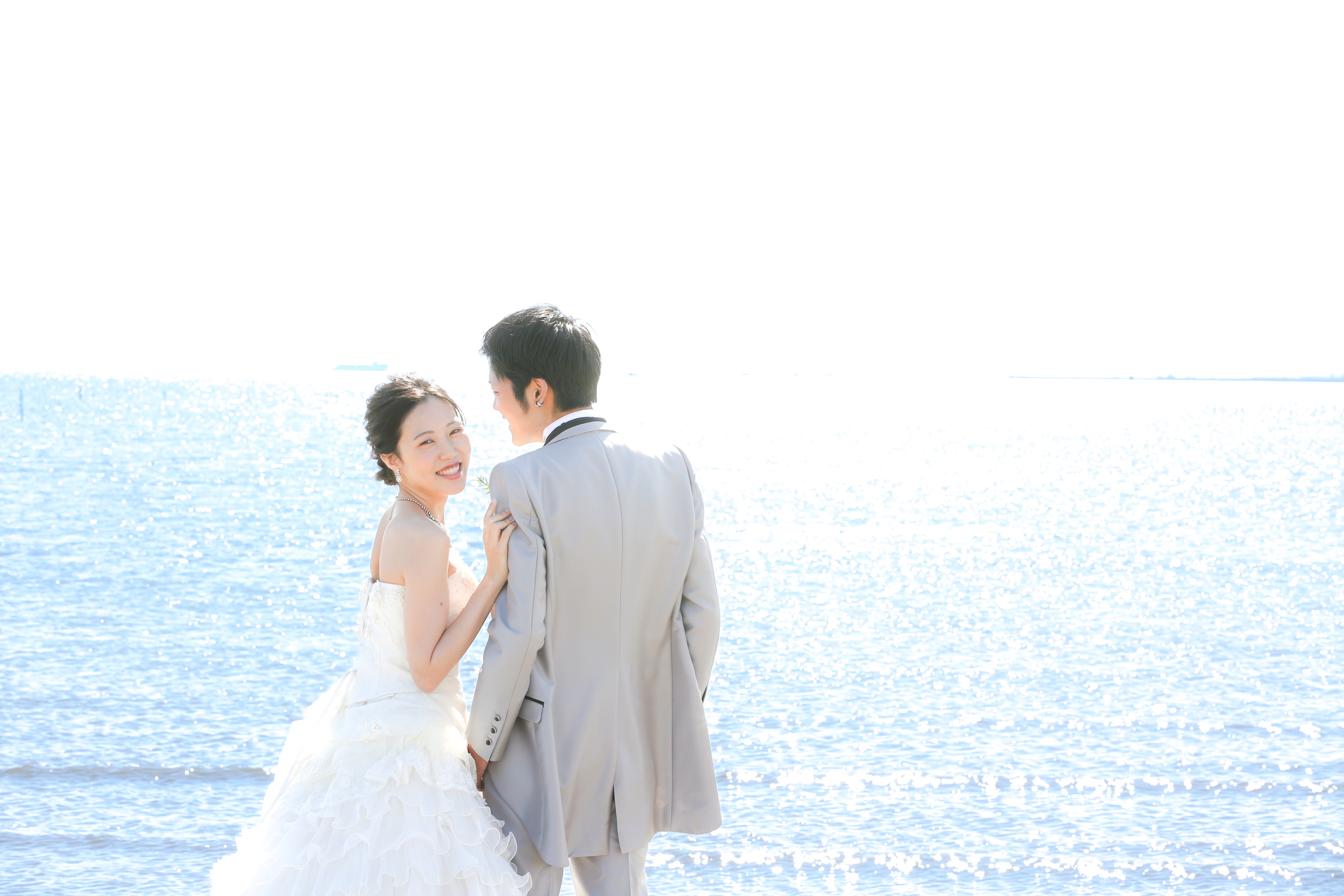 洋装は海での撮影でしたが、仕上がりの写真は白飛びが多いような印象でした。(海で撮影した感が少ない印象)ですが立体感があって素敵な写真もたくさんありました。和装の庭園での撮影は、カタログに載っていそうな和な感じが漂う写真が多くて綺麗でした。