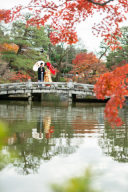 お二人分の和傘はご用意させていただいております。和装と和傘の相性はバッチリです。遠くからでもとても映えます。
