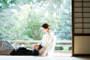 お茶室は、優しい新郎様と新婦様の正座写真が合います。