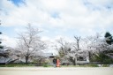 雨の日は少し湿った石畳など雰囲気が出てしっとりした写真ができます。桜が綺麗で、絵になる一枚ですね。