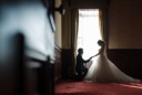 新郎様ソロショット撮影中、新郎様を撮る新婦様。お二人の写真がたくさん増えて一枚一枚がいいですね。