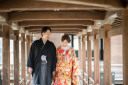 色打掛の次は白無垢で。迫力のあるお寺と、見つめ合うお二人の姿がとても絵になります。