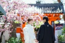 少し場所を移動して、大覚寺で撮影。少しだけ白無垢で撮影して、色打掛に変更します。