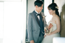 新郎様とカメラマンで、新婦様のソロショットを撮影中。