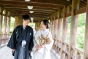 大覚寺さんの村雨の廊下で撮影。お二人の笑顔がいい感じです。
