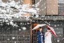 雪と和装とっても映えています。お二人だけの世界のように見えますね。