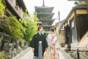 京都らしい風景の中の、和装のおふたりが良く似合っています。