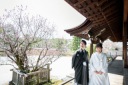 お寺での正座ショットは定番の一枚。雰囲気もあって素敵です。