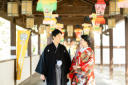 お寺の厳かな空間に和装はとても良く合います。着物の型付けをしたショットもお寺では定番ショットです。