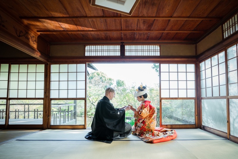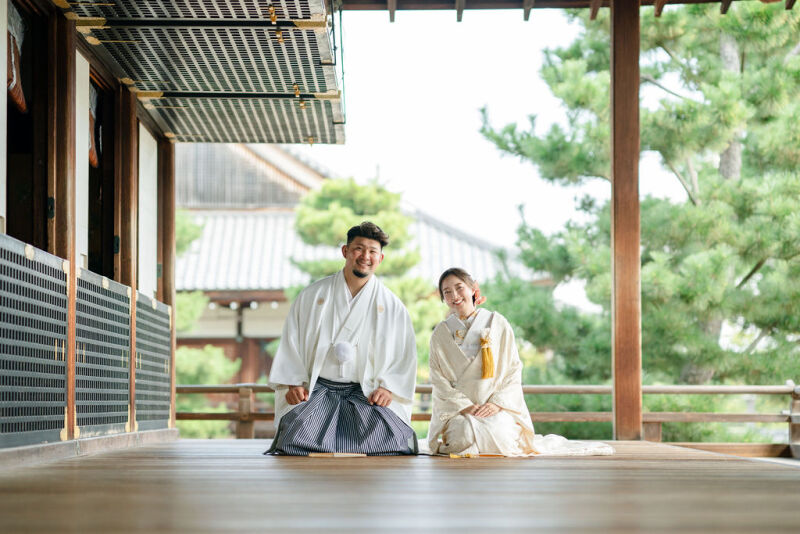 冬のロケーションとして最適な隨心院で、ゆっくりと撮影。 通常プランよりもお得な価格となっております。 新婦:白無垢or色打掛(無料衣装70着以上) 新郎:黒紋付袴 花嫁衣裳追加の場合は、白無垢と色打掛の組み合わせ:33000円で可能です☆